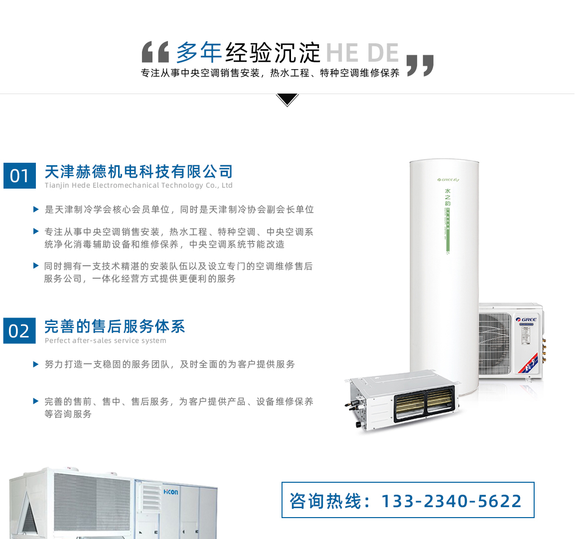 天津赫德機(jī)電科技有限公司是天津制冷學(xué)會會員單位,同時是天津制冷協(xié)會副會長單位,位于天津市海泰經(jīng)濟(jì)區(qū),依托天津制冷學(xué)會團(tuán)隊資源從事中央空調(diào)銷售安裝,熱水工程、特種空調(diào)、中央空調(diào)系統(tǒng)凈化消毒輔助設(shè)備和維修保養(yǎng),中央空調(diào)系統(tǒng)節(jié)能改造。赫德機(jī)電致力于綠色建筑暖通,低能耗解決用戶冷暖,全心全意為用戶負(fù)責(zé),讓大地更綠天空更藍(lán)。企業(yè)服務(wù)宗旨:做綠色建筑暖通,低能耗解決用戶冷暖,全心全意為用戶負(fù)責(zé),讓大地更綠天空更藍(lán)。